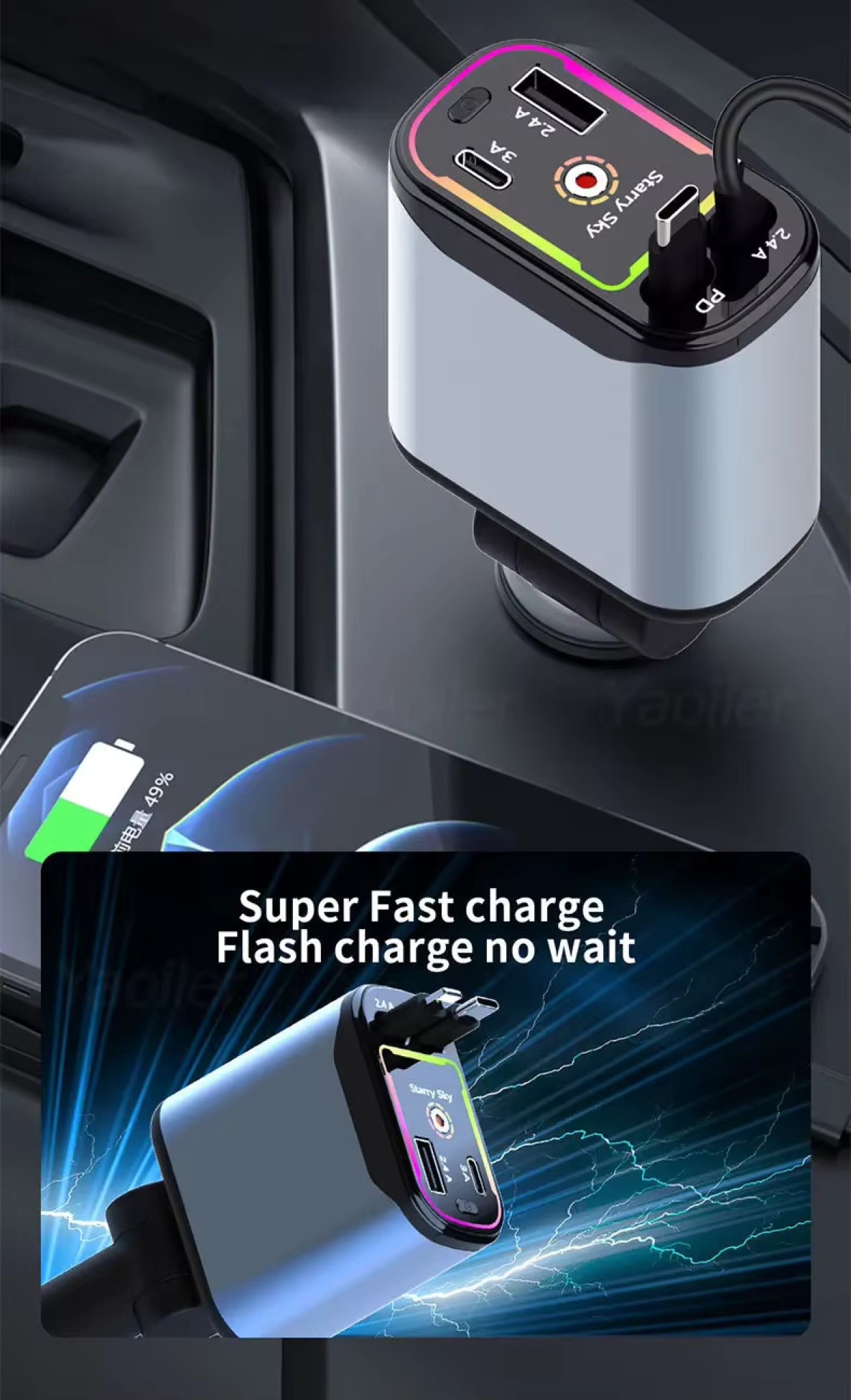 Hochwertiger, Hochleistungs-Car Charger mit Starlight