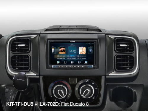 Mit dem Einbausatz KIT-7FI-DU8 können Sie ein Alpine 2-DIN Navigations- oder Autoradiosystem nahezu perfekt in den Fiat Ducato III Version 8 integrieren. Es ist mit folgenden Alpine Geräten kompatibel: INE-W611D / INE-W611DC, iLX-705D, iLX-W690D und INE-W720D / INE-W720DC.
