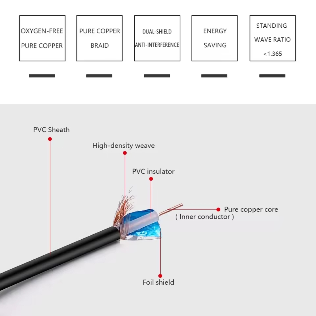 Dieses hochwertige Antennenkabel dient der sicheren Verbindung von Komponenten der Hochfrequenztechnik. Es zeichnet sich durch eine sehr geringe Dämpfung aus.