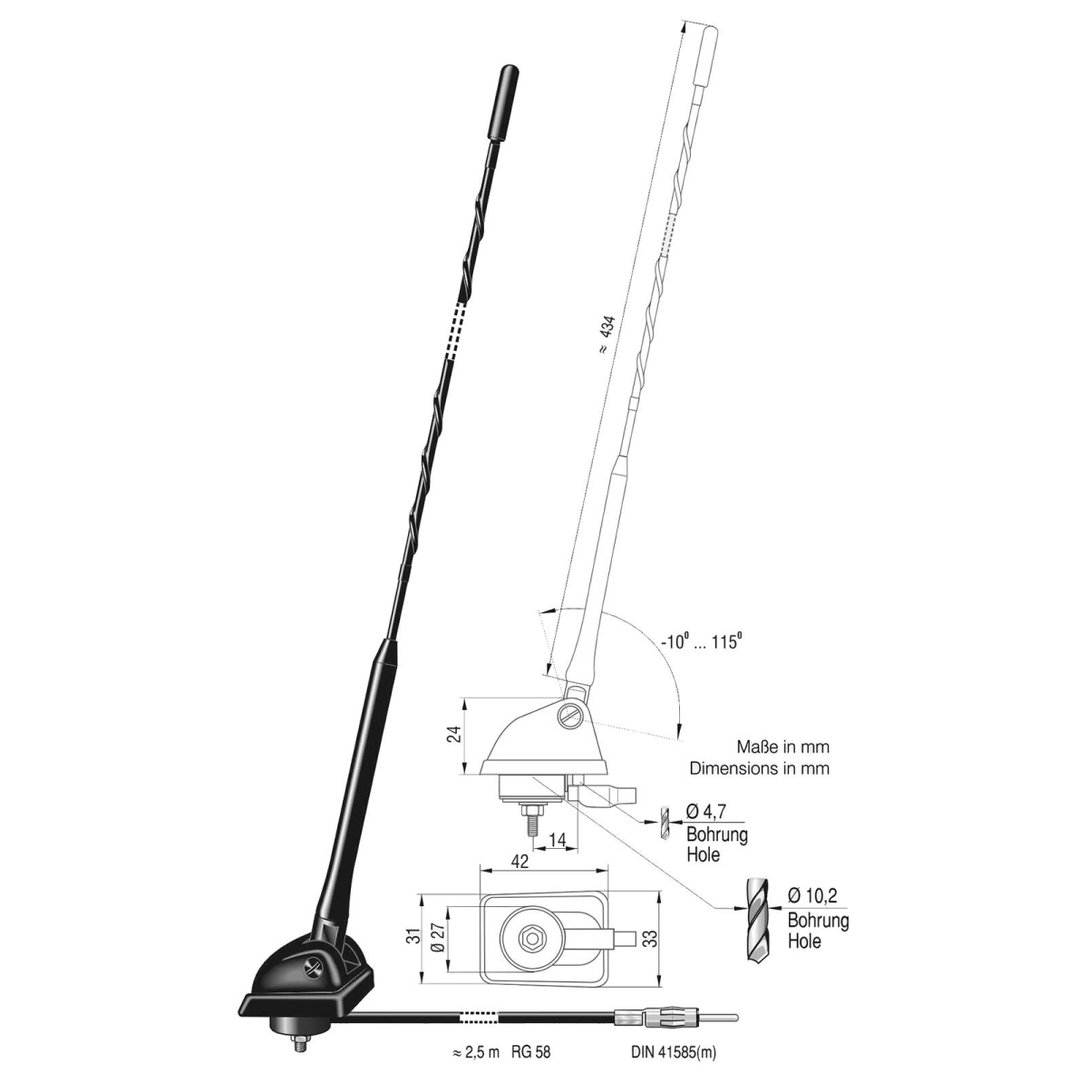 - Gelenk-Antenne (Dach/Seit-Montage) mit Kurzstabes-23 cm Stab