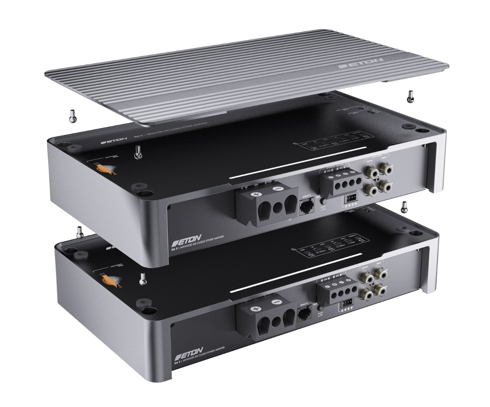 Die neue High-End Sound-Quality GA-Serie erweitert das ETON-Verstärkerprogramm in der Premium-Klasse. Die GA 2, das 2-Kanal Modell der Serie, hat es in sich: eine signifikant hohe Gesamt-Ausgangsleistung von bis zu 865 Watt RMS, extrem niedrige Klirrwerte von unter 0,003 % (ultra-low THD+N) für maximale Sound- Quality, optimierte Kontrolle dank hohem Dämpfungsfaktor und überlegene Filterflexibilität.