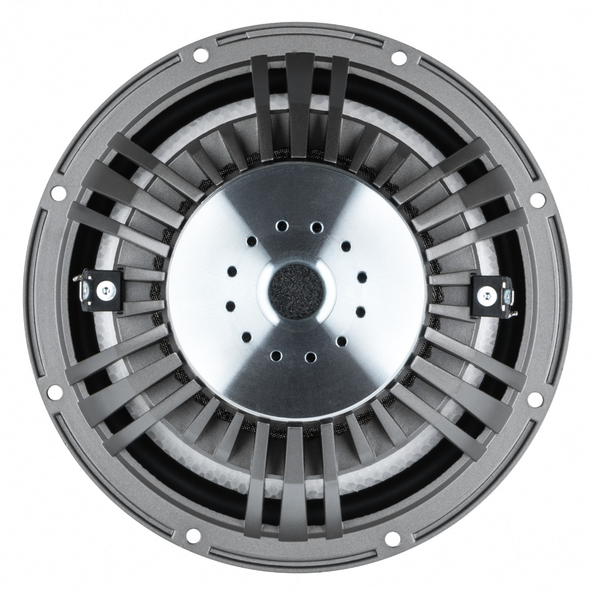 Ein kräftiger Neodymantrieb mit optimierter Magnetfeldsymmetrie ermöglicht die dynamische, impulstreue und kontrollierte Wiedergabe - vom Kleinstsignal bis hin zu hohen Pegeln und Basspunches. Anfallende Hitze wird über den verwindungssteifen, gut belüfteten Aluminium-Druckgusskorb, die Bodenplattenbohrungen sowie den Phase-Plug abgegeben. Details wie die symmetrische Litzenführung und die belastbare Aufhängung vermindern Taumeleffekte - in der Premium Klasse kaum wegzudenken.