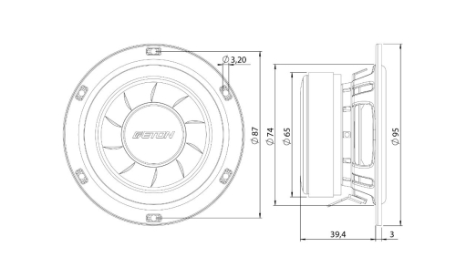 Der 80 mm (3") Mitteltöner verfügt über den ETON-typischen pulverbeschichteten Metallkorb im verwindungssteifen, strömungsoptimierten Doppelstreben-Design. Dazu kommt die neu entwickelte PRA-Membran aus einem rippenverstärktem Papier-Glasfasergemisch - hergestellt in einem speziellen Fertigungsverfahren.