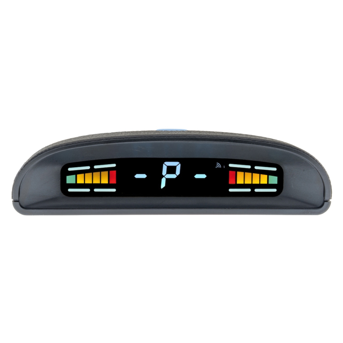 LED Display für die gemeinsame Nutzung von Heck- und Front-Sensoren. Die automatische Einschaltung der Front-Sensoren wird über GPS gesteuert. Wenn PSD400-GPS LED-Display im Fahrzeug installiert wird, entfällt der Einbau der Funklautsprecher.