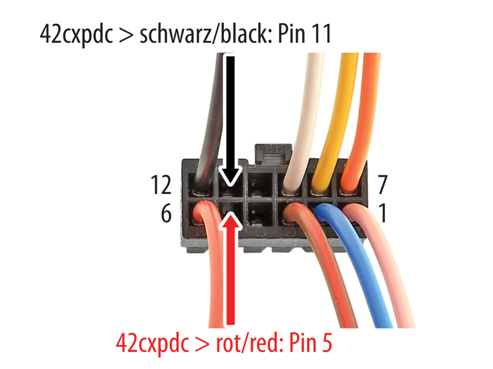 - Anschluss: +12V Dauerstrom Klemme 30 Batterie abgesichert > loses Kabel rot