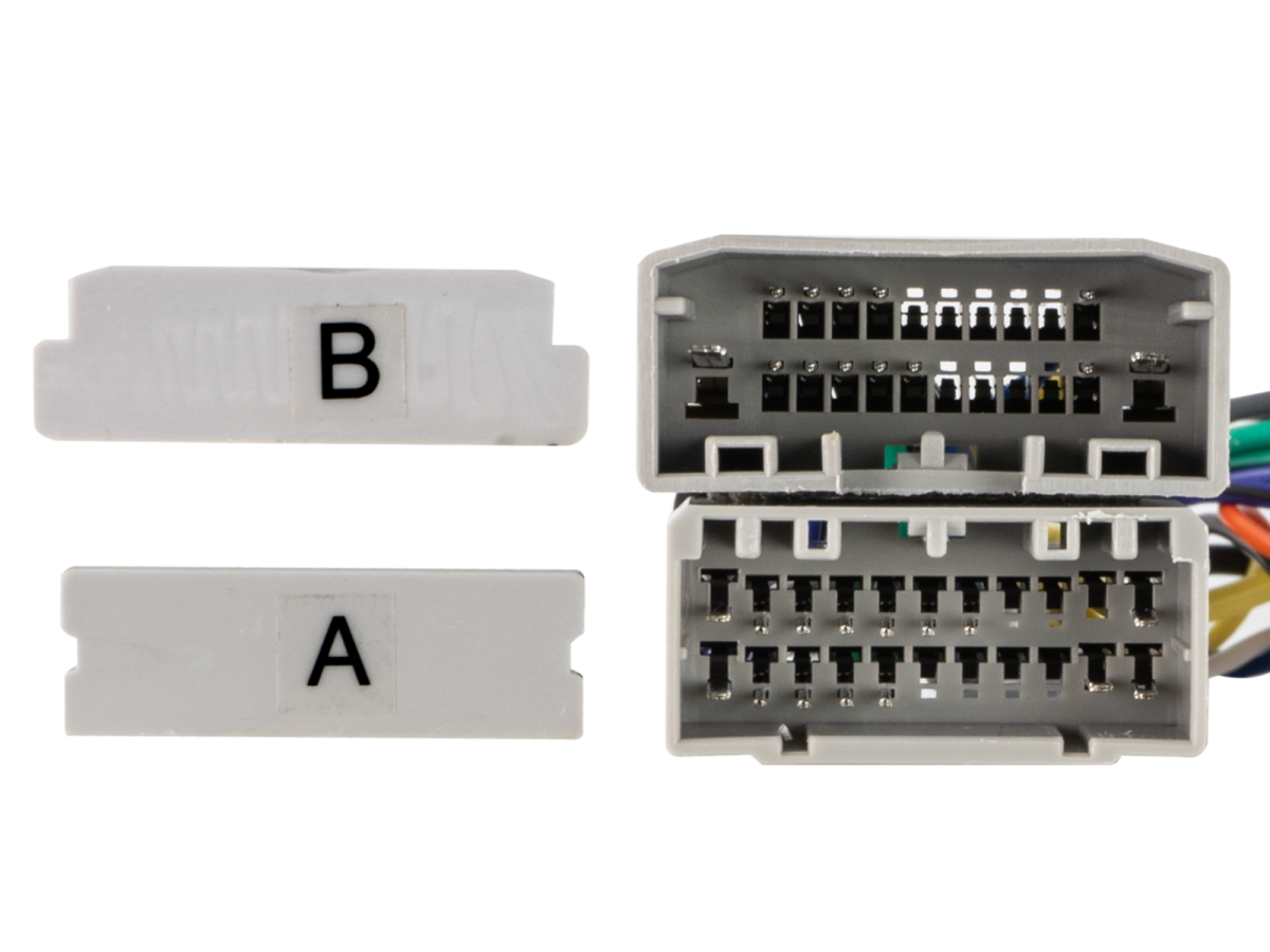 Vergleichen Sie die abgebildeten Stecker des Adapters mit denen in Ihrem Fahrzeug und vergewissern Sie sich, dass diese optisch und technisch passen.