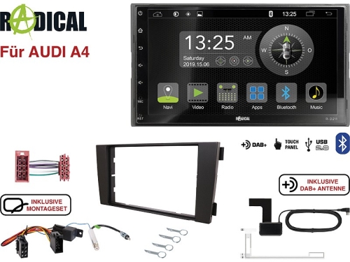 Radical R-D211 2-DIN DAB+ mit Montageset für Audi A4 Vollaktiv