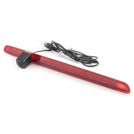 Fahrzeugspezifische Rückfahrkamera für den VW Transporter T6/T6.1 mit Heckklappe mit Heckklappe. Die KV-T6H wird gegen das werkseitige dritte Bremslichtglas einfach ausgetauscht.