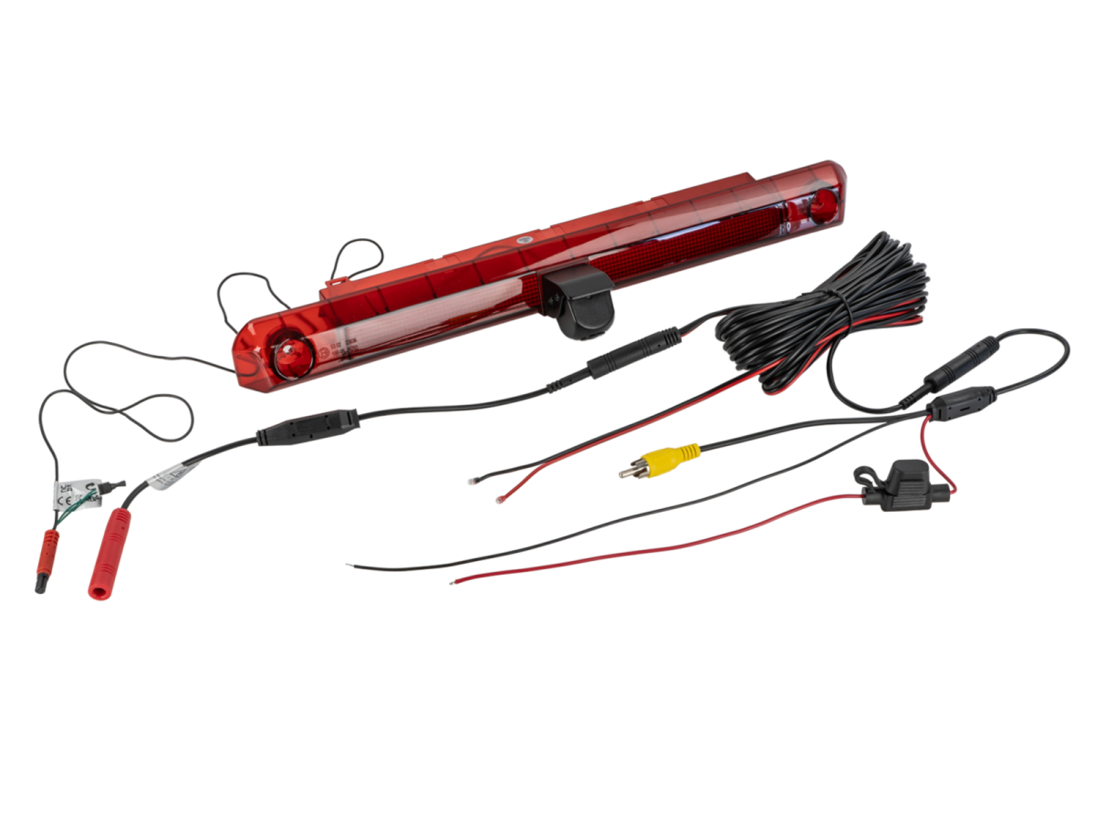 - Stromleitung rot 3m +/- durchverkabelt: Anschluss an Kamera / Anschluss Rückfahrlicht zum Monitor