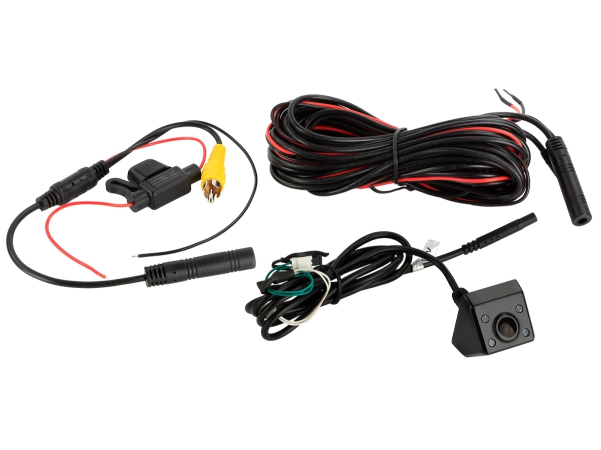 - Stromleitung rot 3m +/- durchverkabelt: Anschluss an Kamera / Anschluss Rückfahrlicht zum Monitor