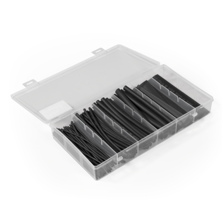 Schrumpfschlauch-Set, 100-teilig in Sortimentsbox, schwarz