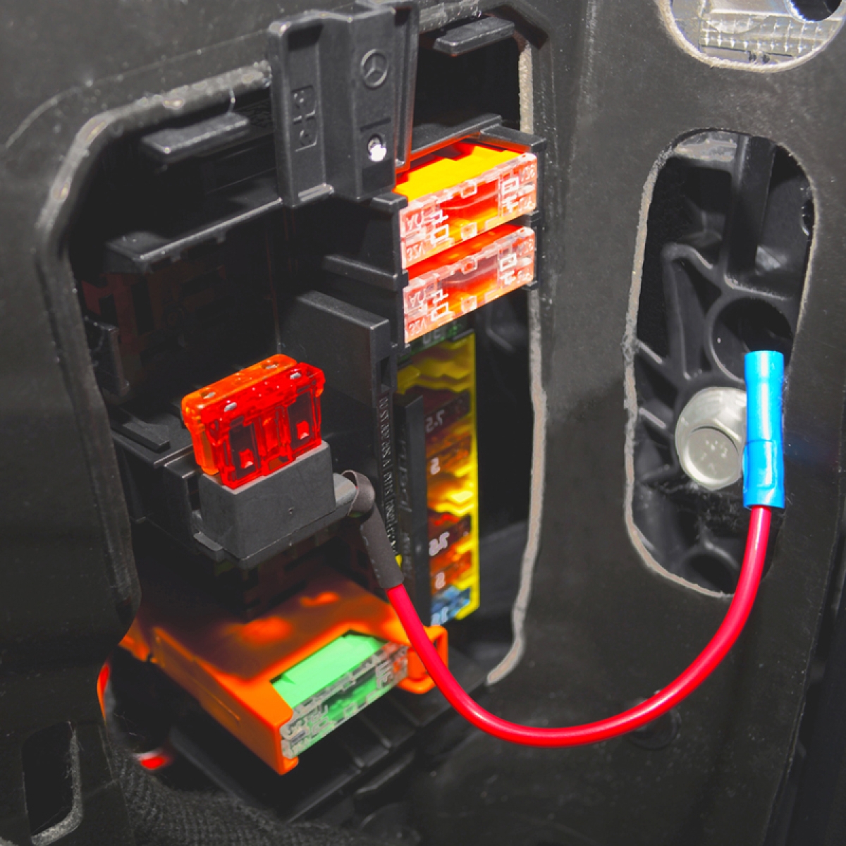 Die originale Sicherung in den XSA600 wieder einstecken und der gewünschte Abgriff liegt über eine mitgelieferte 10A ATO-Sicherung abgesichert auf einer 4mm Rundsteckhülse vor.