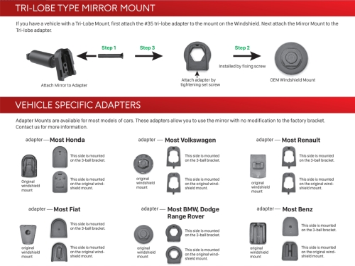 - Zur Auswahl vergleichen Sie die OEM Aufnahme an der Windschutzscheibe (siehe BDA)