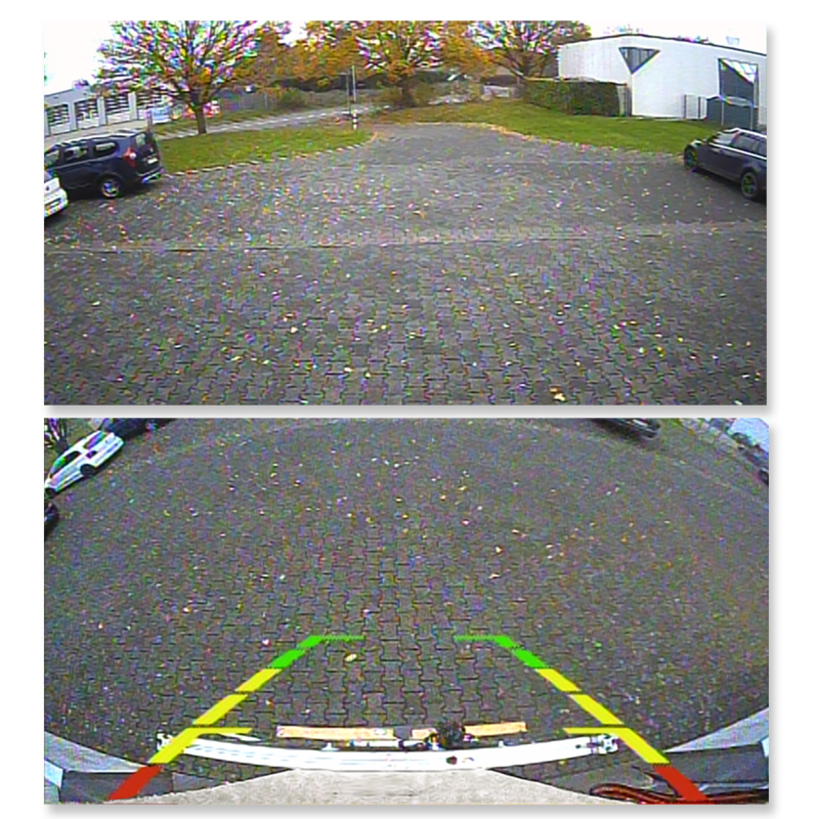 Mit der oberen Kamera haben Sie, wie bei einem Rückspiegel, immer den rückwärtigen Verkehr im Blick. Die untere Kamera schaltet sich dann beim Parken automatisch ein und schaut gerade nach unten, damit der Fahrer die Fahrzeugabmessungen immer exakt sehen kann. Die Kamera kann im Dauerbetrieb eingesetzt werden.