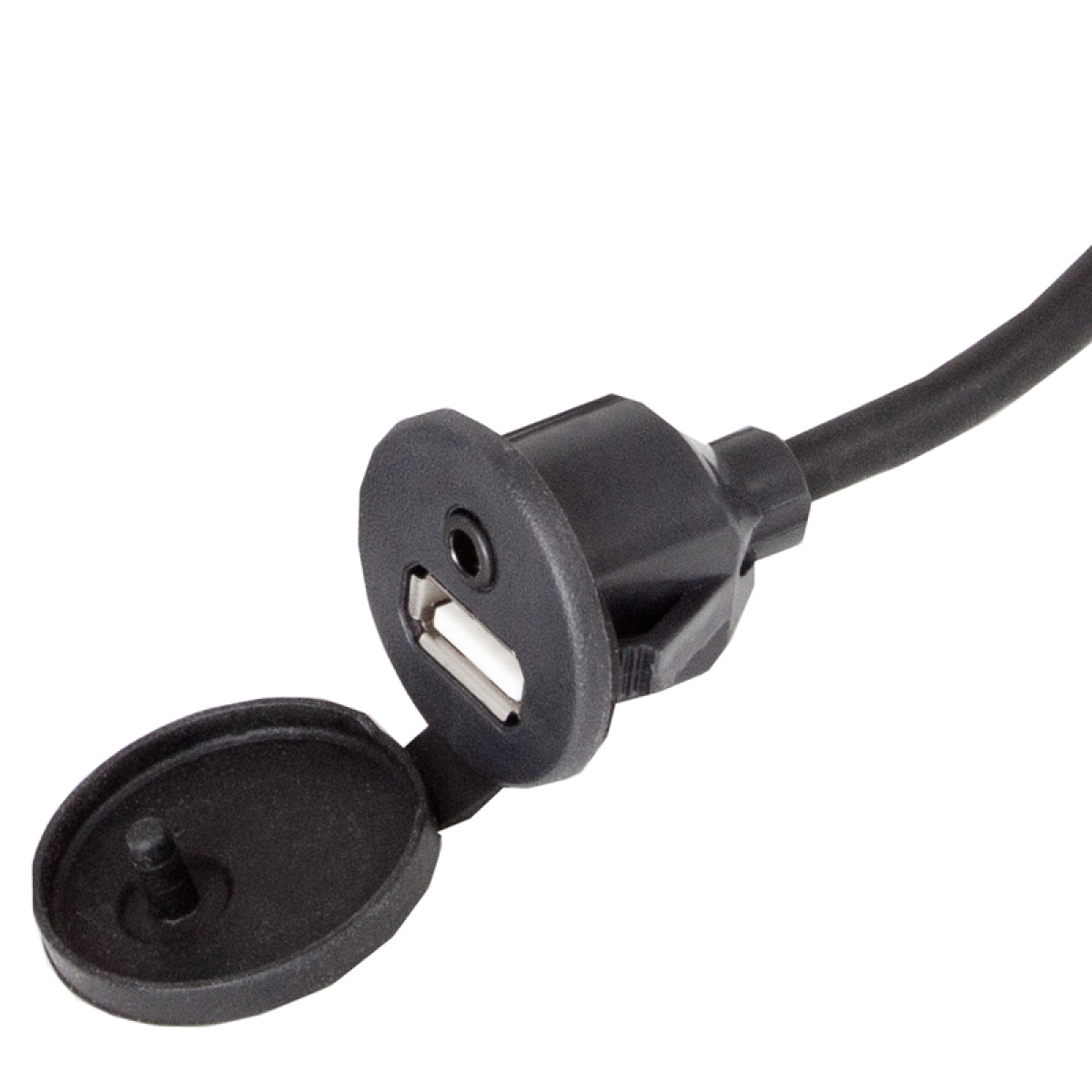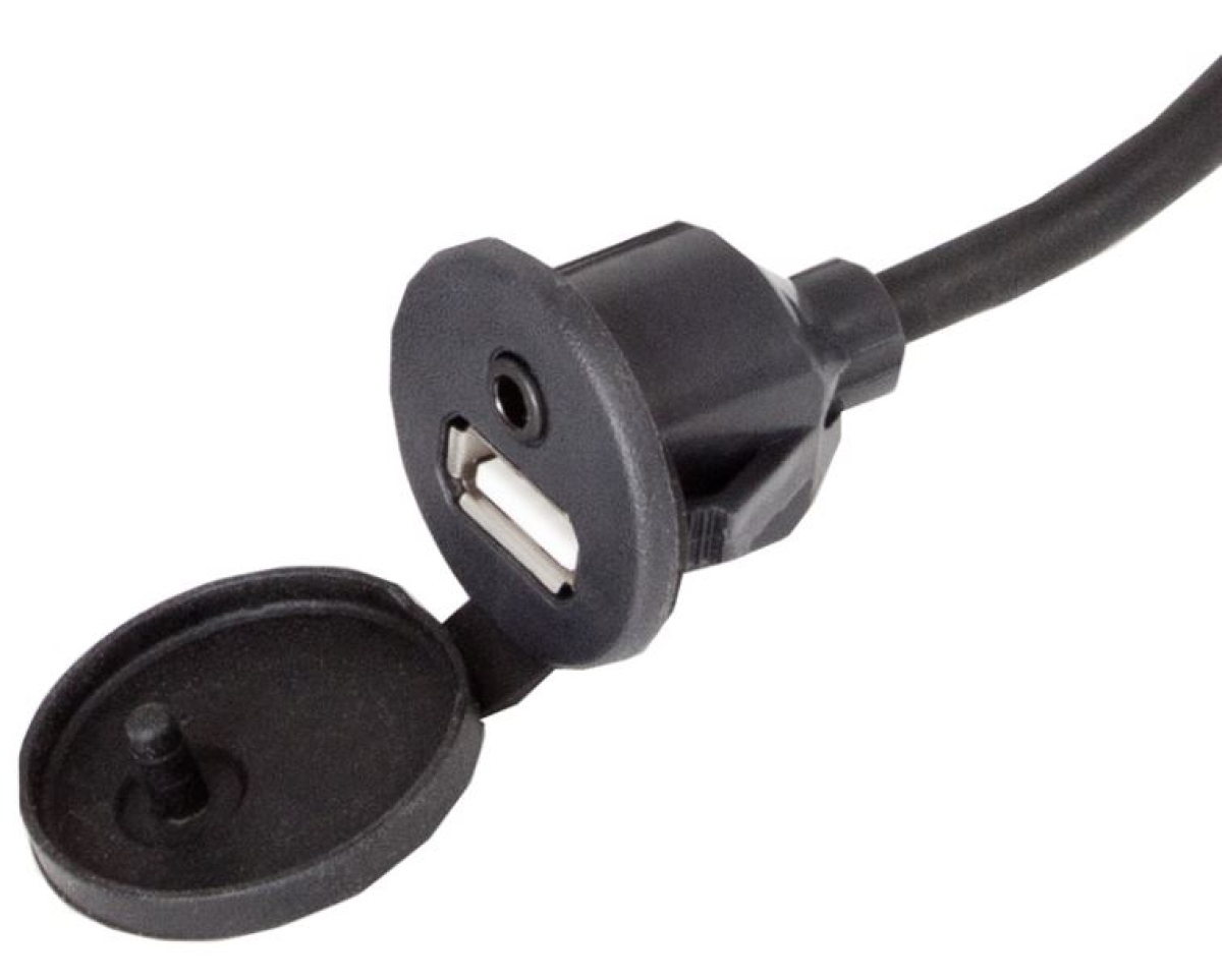 USB-Einbaubuchse (24mm Einbauöffnung) mit 3.5mm Klinke. Kabellänge 130cm