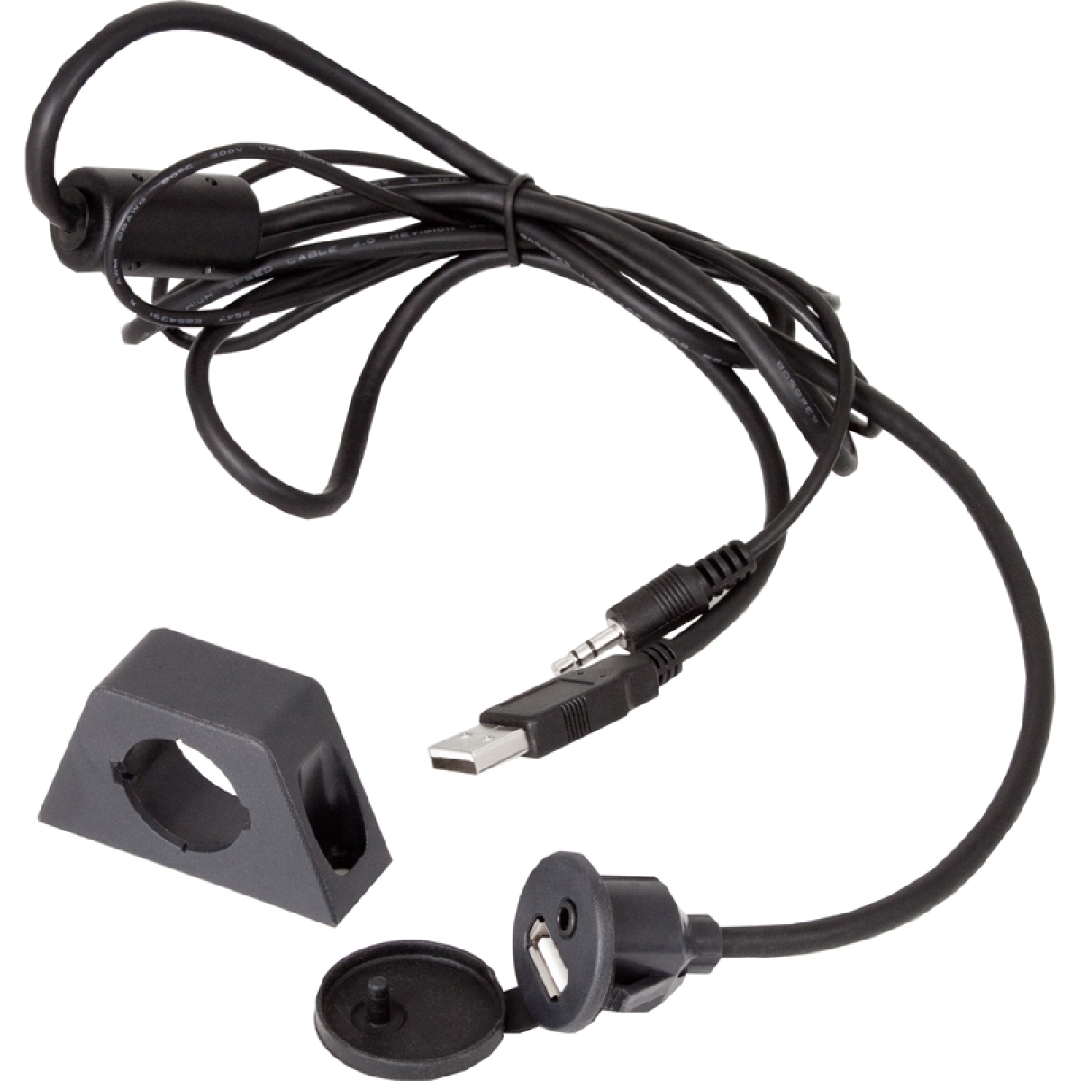 USB-Einbaubuchse mit 3.5mm Klinke. Länge 130cm, schwarz