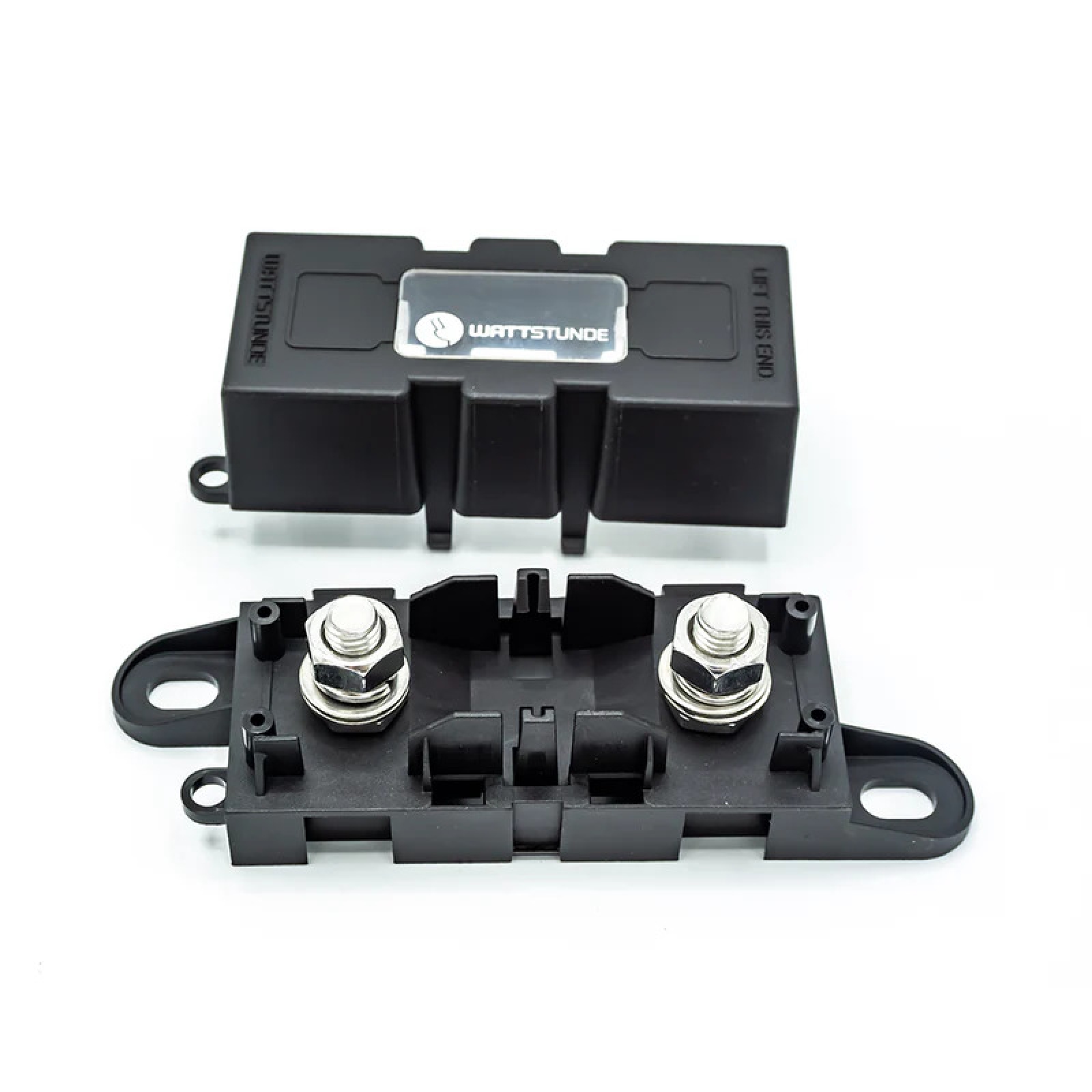 Der Wattstunde® Sicherungshalter in schwarzer Ausführung ist für die sichere Aufnahme von ANM Hochlastsicherungen ausgelegt und eignet sich ideal für leistungsstarke 12-, 24- und 48-Volt-Stromsysteme. Er sorgt für eine zuverlässige Absicherung von Leitungen, Batterien und angeschlossenen Verbrauchern.