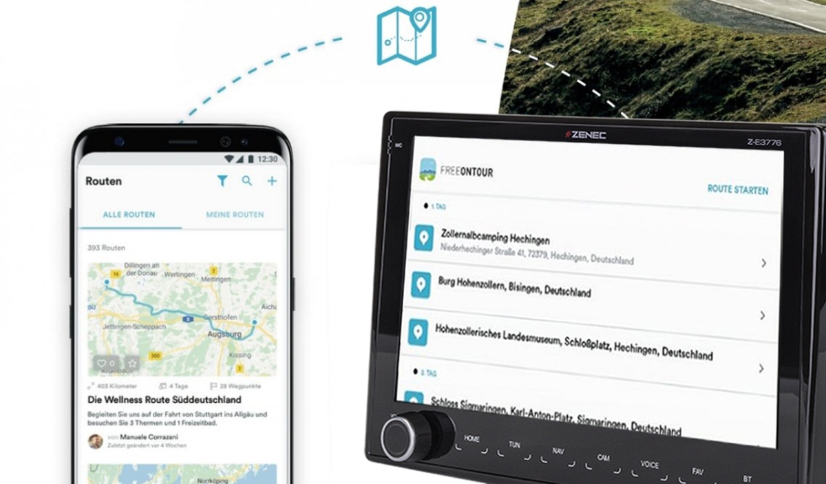 - Integrierte FREEONTOUR Send-To-Car Funktion für die Reiserouten Planung
