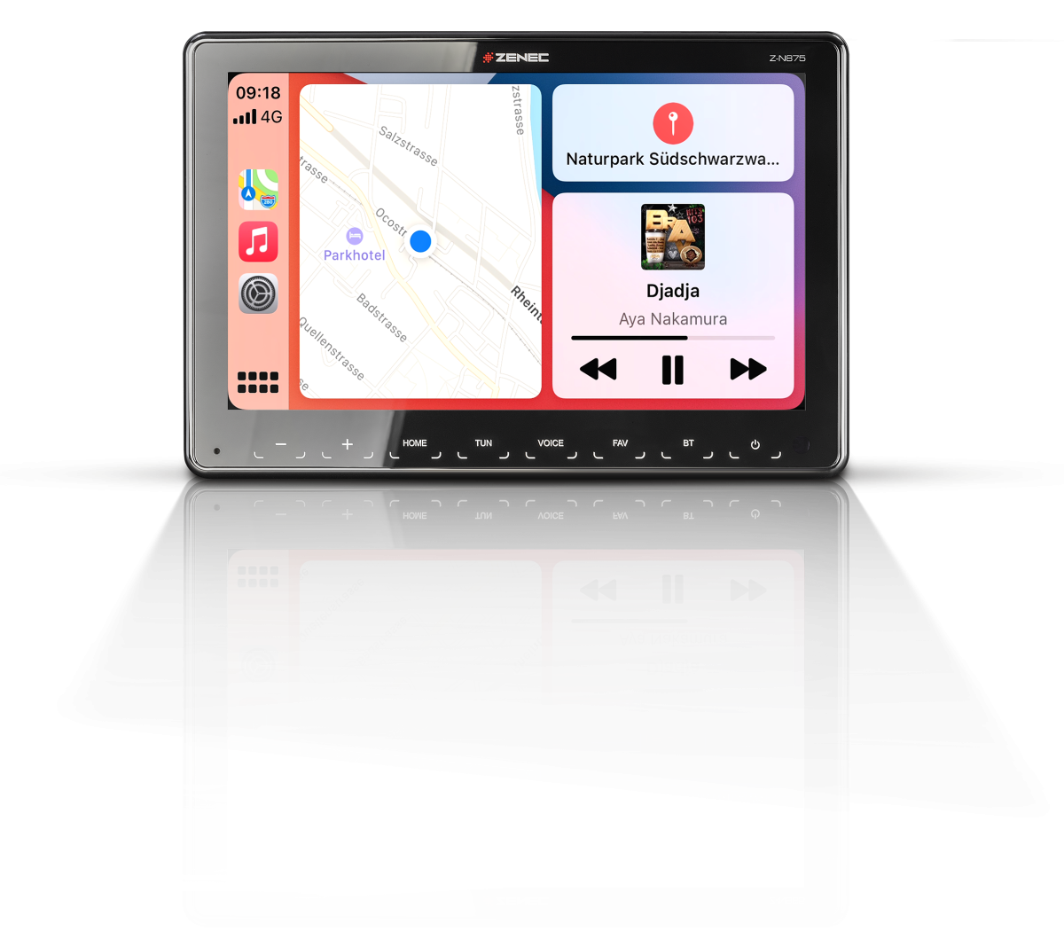 Die speziell von Apple und Google entwickelten Systeme zur Konnektivität von Smartphones und Infotainment Systemen bieten höchste Verkehrssicherheit und ermöglichen eine bequeme Nutzung der installierten Apps. Dockt man das Smartphone über den USB-A 2.0 Port an den Infotainer an, werden die App Grafiken auf den Gerätebildschirm skaliert. Bedient wird je nach eigener Präferenz über Touchscreen, Lenkradfernbedienung oder Sprachsteuerung via Apple Siri oder den Google Sprachassistenten. Wer ein Abo für aktuelle Streaming Dienste wie Apple Music, Spotify oder Amazon Music auf seinem Smartphone hat, kann dieses Abo somit auch auf dem Z-N875 nutzen.